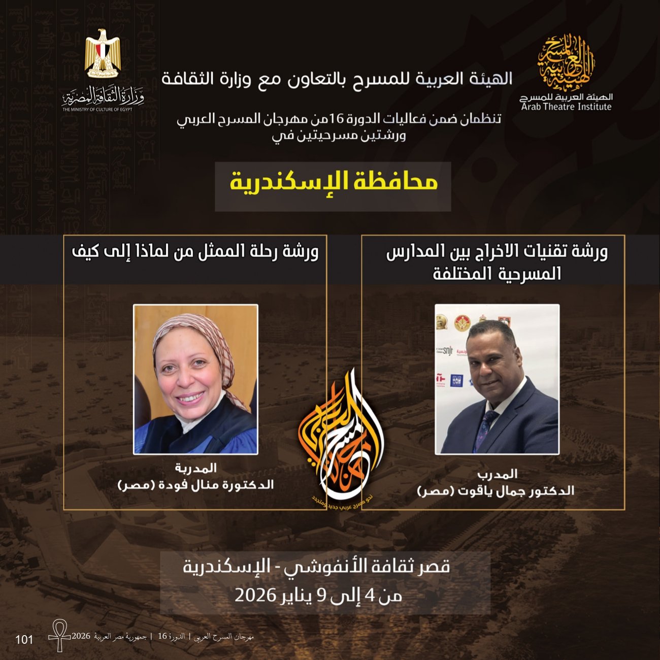 انطلاق أولى ورش مهرجان المسرح العربي في قصر ثقافة الأنفوشي بالإسكندرية